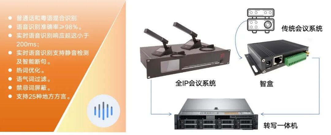 通过自主研发的语音转写智盒,兼容各类传统会议系统,创新打造全IP会议系统,确保每一句话都能实时同步记录。